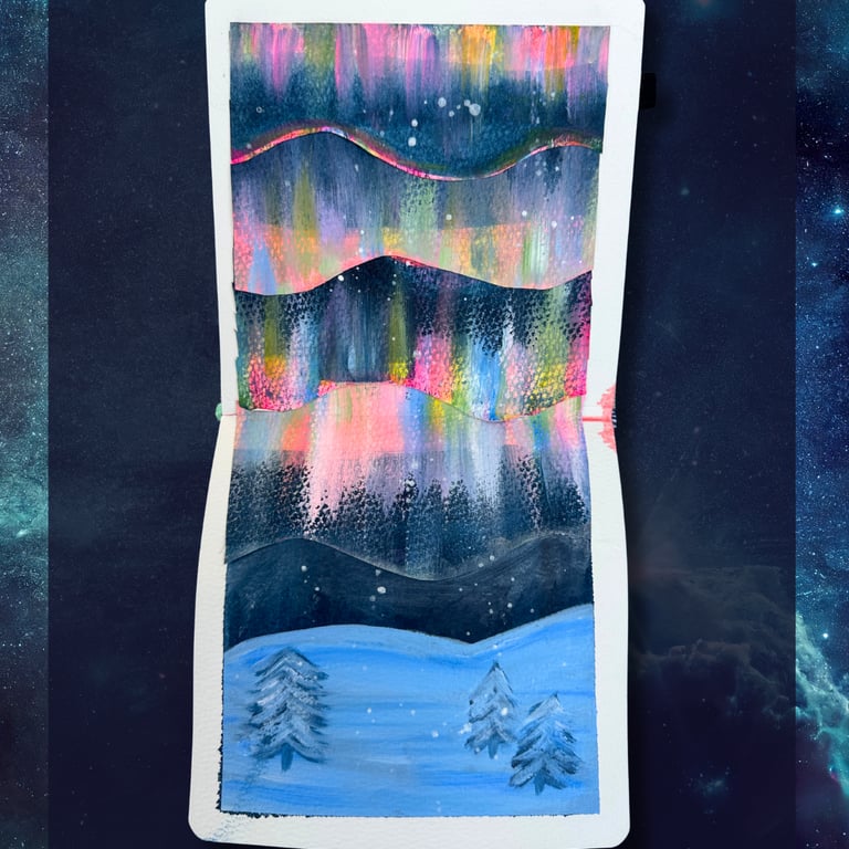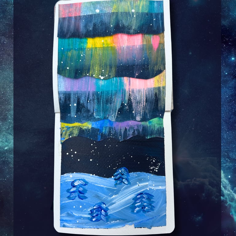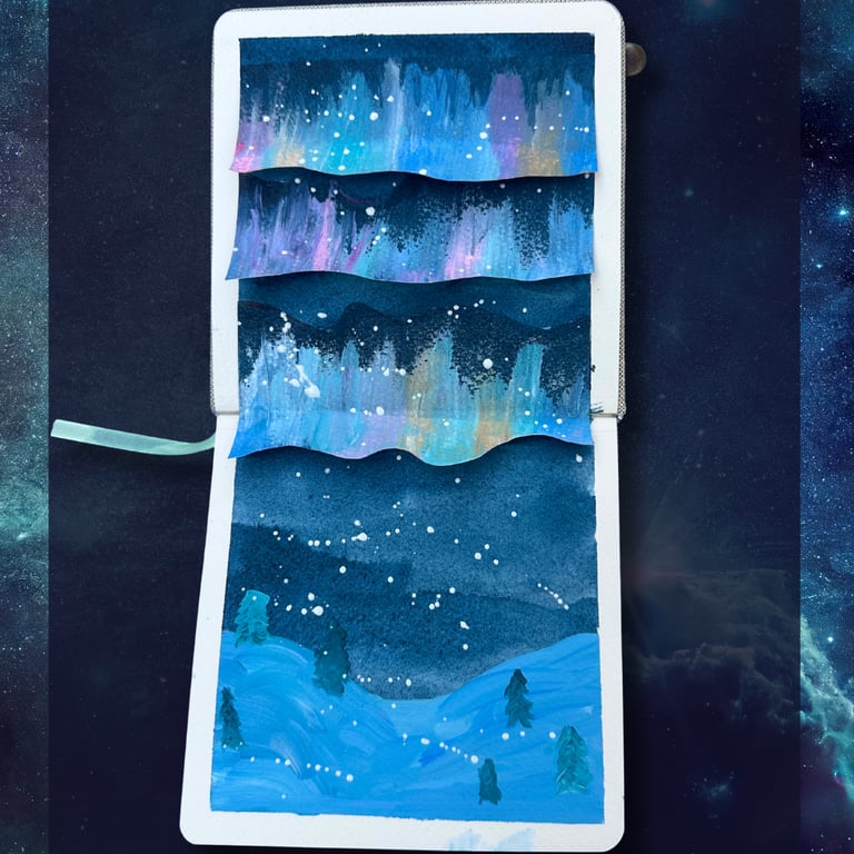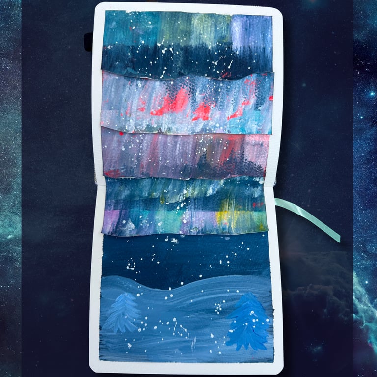 Everyone created their own Northern Lights art journal—each one different, expressive, and full of personality.