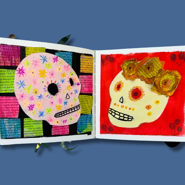 Our recent Sunset Palms mixed media workshop was such a joy! Each student created their own beautiful, unique palm tree artwork. I loved seeing how the collaged magazine strips came together on paper, later cut and layered to form the trees. The process has a wonderfully spontaneous feel—unexpected textures and colors suddenly appear, making each piece one-of-a-kind.